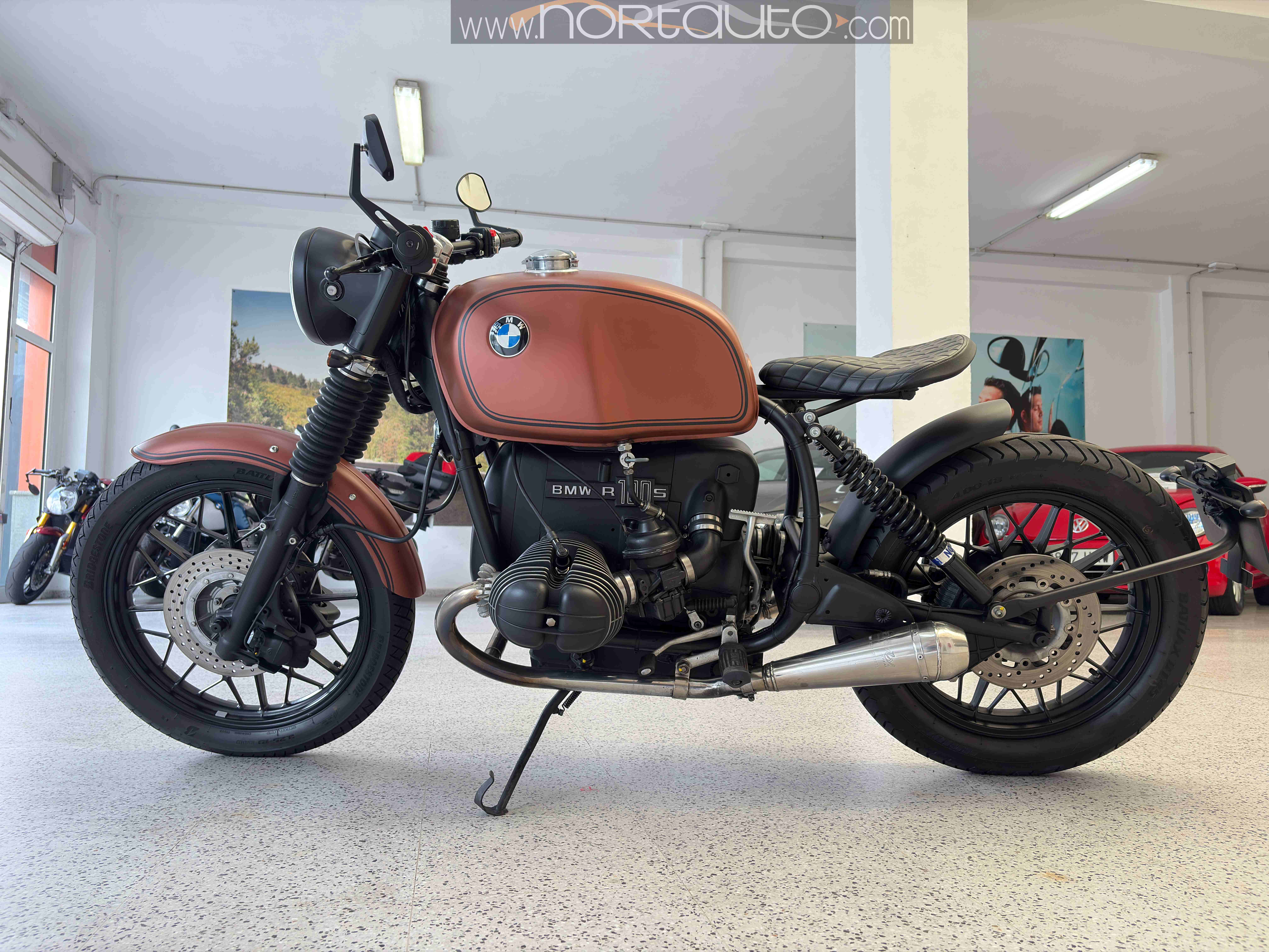 BMW R100S de 1979 totalmente restaurada y convertida en Retromod tipo café racer, todo nuevo menos la base del motor y el chasis, una obra de arte única, no hay otra igual. Todo Homologado en ficha técnica. Se entrega con el libro de ingeniería, y el USB con el proceso de creación.